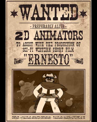 Above is the animatic and some design work for my graduate film, "Ernesto". It is a space-western, slapstick inspired comedy, lasting only 2 minutes and 25 seconds, wherein he attempts to rob a train filled with money. Unfortunately for him and everyone he encounters, the character Ernesto manages to mess up at every turn, ultimately leaving the train as a bunch of floating shrapnel in space, thanks to him blowing it up!
